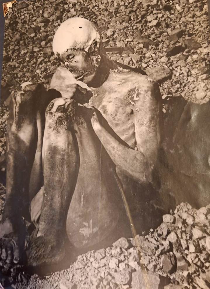 Luego señalaba que el joven objeto del sacrificio “con seguridad llegó vivo al lugar del enterratorio, donde murió de un fuerte golpe aplicado en la cabeza, lo demuestran las manchas de sangre encontradas en el cuerpo y en la ropa”,